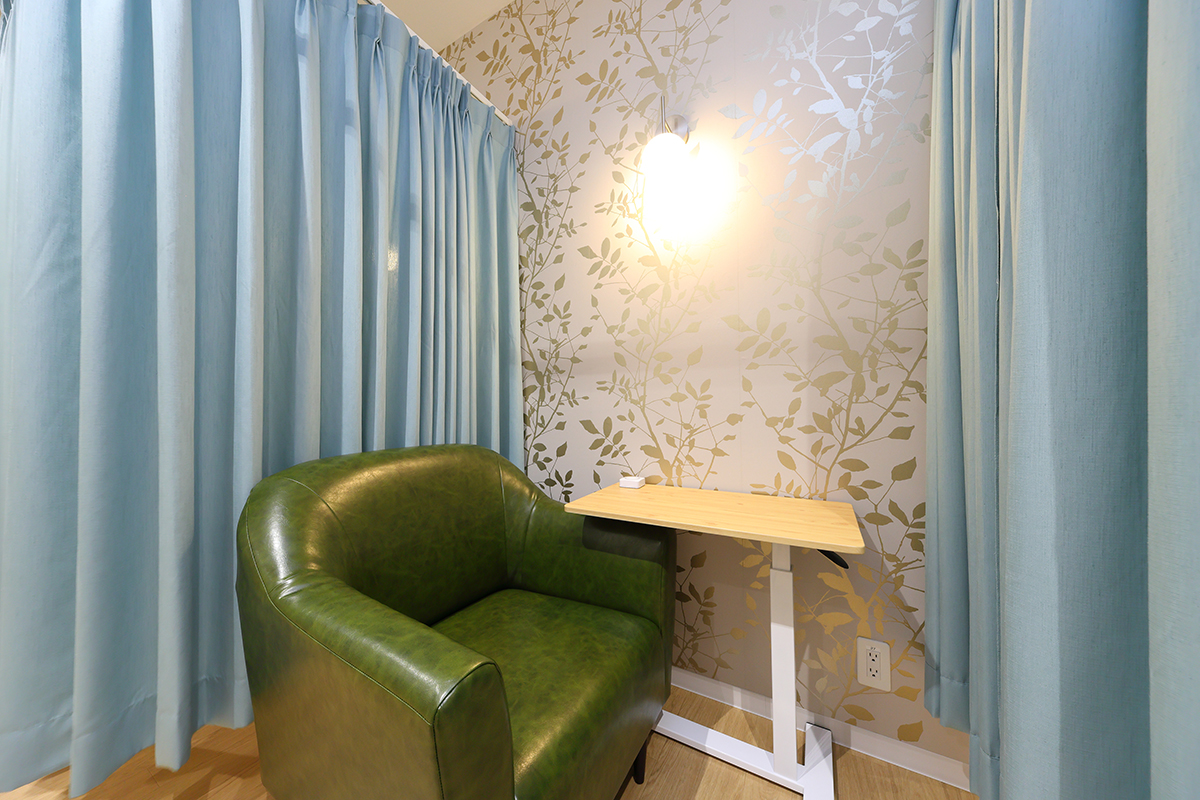 - 周囲の目を気にせず、ご自身のペースで準備を進めていただけます。お好きな本やタブレットを持ち込んで過ごすことも可能です。